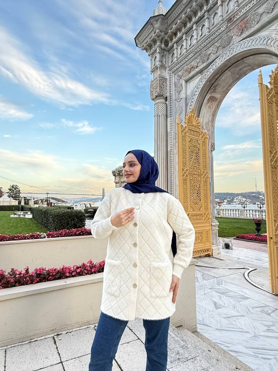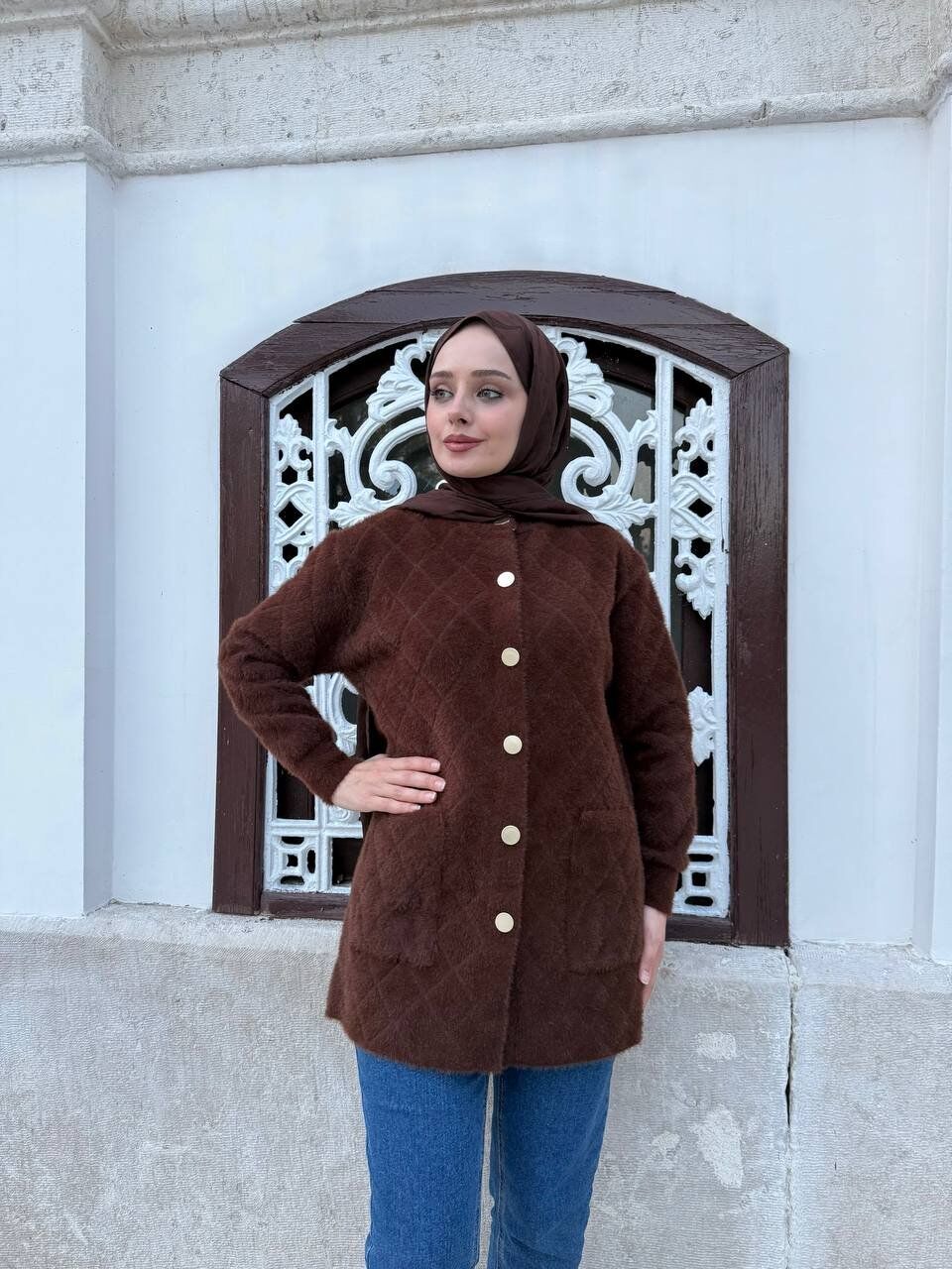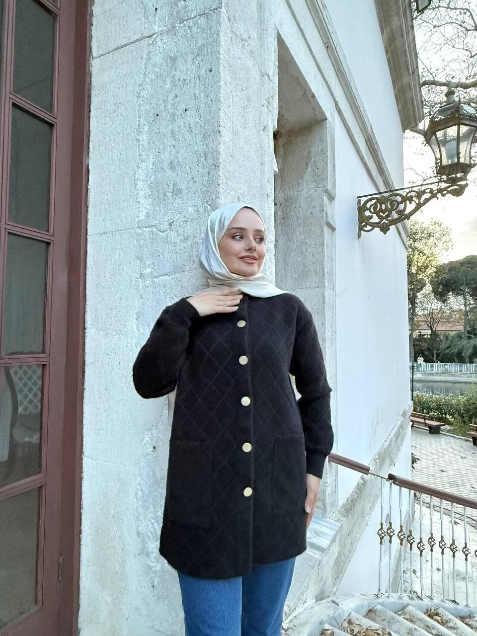 Soğuk havalarda içinizi ısıtacak yumuşacık dokusu ve şık tasarımıyla yeni sezonun favorisi olmaya aday! Klasik baklava deseninin modern bir dokunuşla yorumlandığı bu hırka, altın sarısı düğme detaylarıyla kombinlerinize zarafet katıyor. Hem günlük kullanımda kot pantolonlarla hem de klasik parçalarla rahatlıkla eşleştirebileceğiniz, gardırobunuzun kurtarıcı parçası.