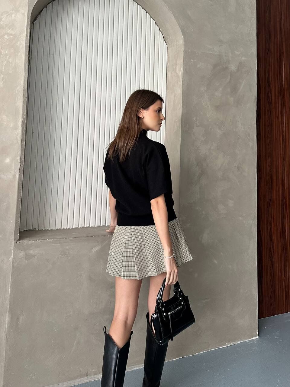 Ürün Açıklaması: Dolabınızın en dinamik parçası olmaya aday! Kaliteli Rosman kumaşın tok duruşu ile tasarlanan bu pileli mini etek, hem spor hem de şık kombinlerinizin vazgeçilmezi olacak. Standart beden yapısı sayesinde farklı vücut tiplerine uyum sağlayan esnek ve konforlu bir kalıba sahiptir. Lacivert rengindeki ince çizgi detayları ile ofis şıklığını yakalayabilir veya krem rengindeki ekose deseniyle kolej stilini sokağa taşıyabilirsiniz.