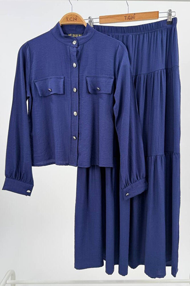 Cep Detaylı Düğmeli Ceket Etek İkili Takım