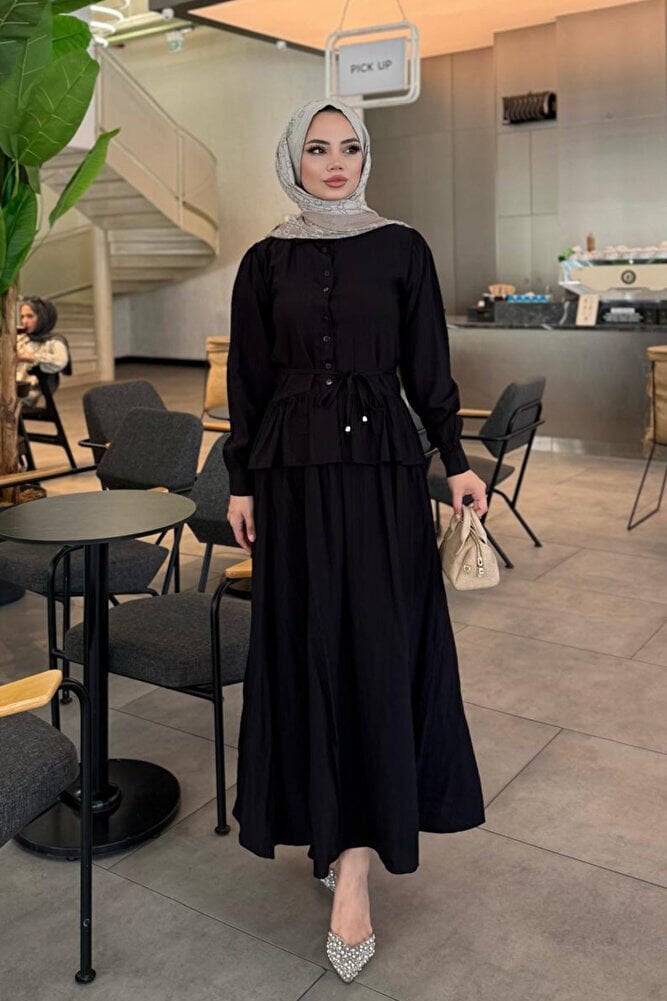 Etek uzunluğu 90 cm gömlek uzunluğu 60cm kalıplar tam kalıptır kendi bedeninizi alabilirsiniz.; - Zarif tasarımıyla dikkat çeken fırfırlı etek gömlek ikili takım, günlük kullanım için idealdir.; - Dokuma kumaş yapısı sayesinde hem şıklığı hem de konforu bir arada sunar.; - Slim kalıbıyla modern ve şık bir görünüm sağlar; vücut hatlarını nazikçe sararak feminen bir siluet oluşturur.; - Maxi boy kesimi ile zarafeti ön plana çıkaran bu takım, hareket özgürlüğü sunarken stil sahibi olmanızı sağlar.; - Gömlek ve etek kombinasyonu, hem rahatlık hem de estetik açıdan mükemmel uyumu garanti eder.; - Uzun kol boyu mevsim geçişlerinde ideal koruma sağlarken ince yapısı yaz ayları için hafiflik katmaktadır.; - Regular paça tipiyle her adımınızda rahatlık hissi yaşamanız için tasarlanmıştır; gün boyu konforlu bir deneyim vaat eder.;