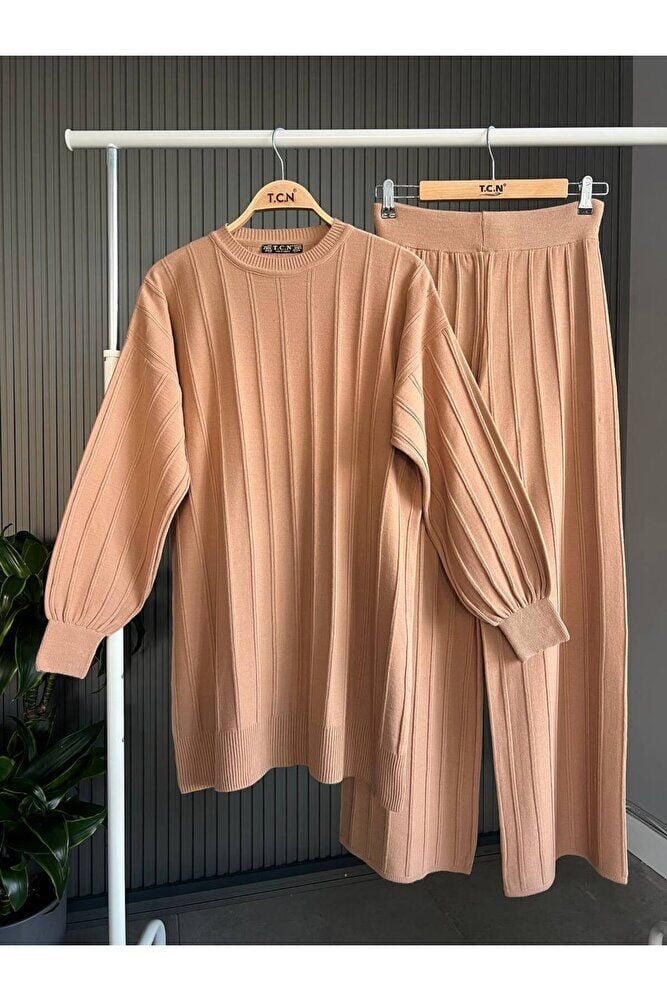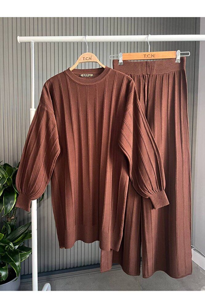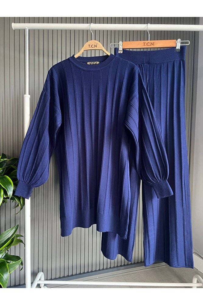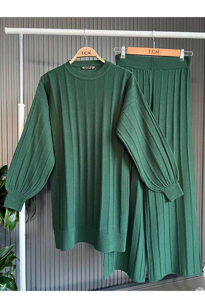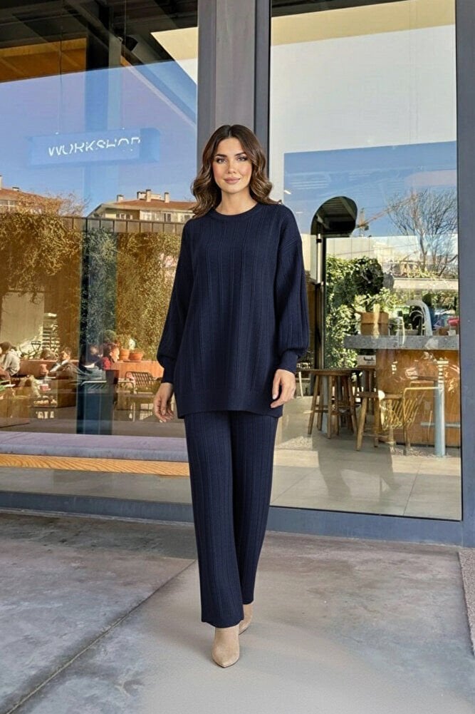 İnce Fitilli Yarasa Kol Triko Tunik Pantolon Ikili Takım