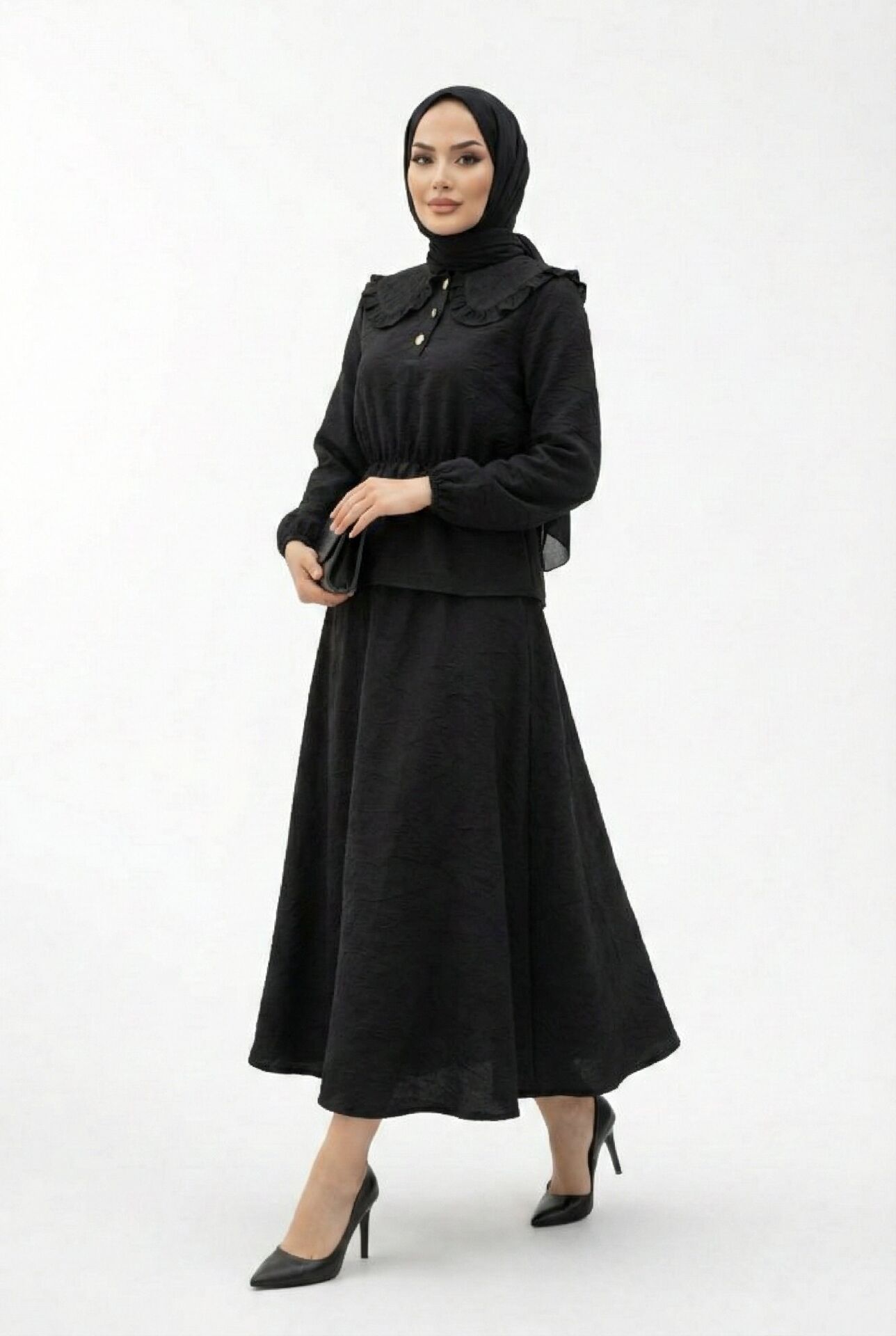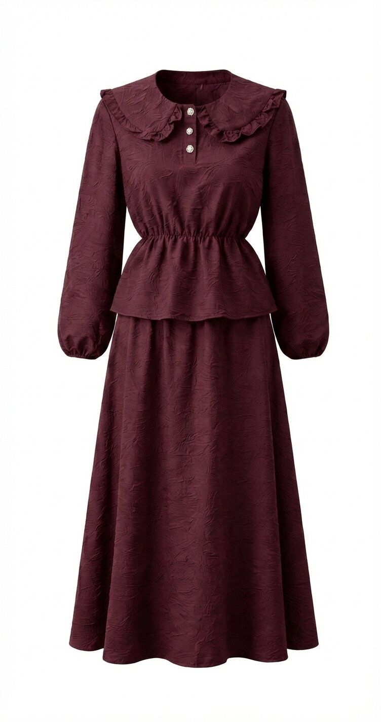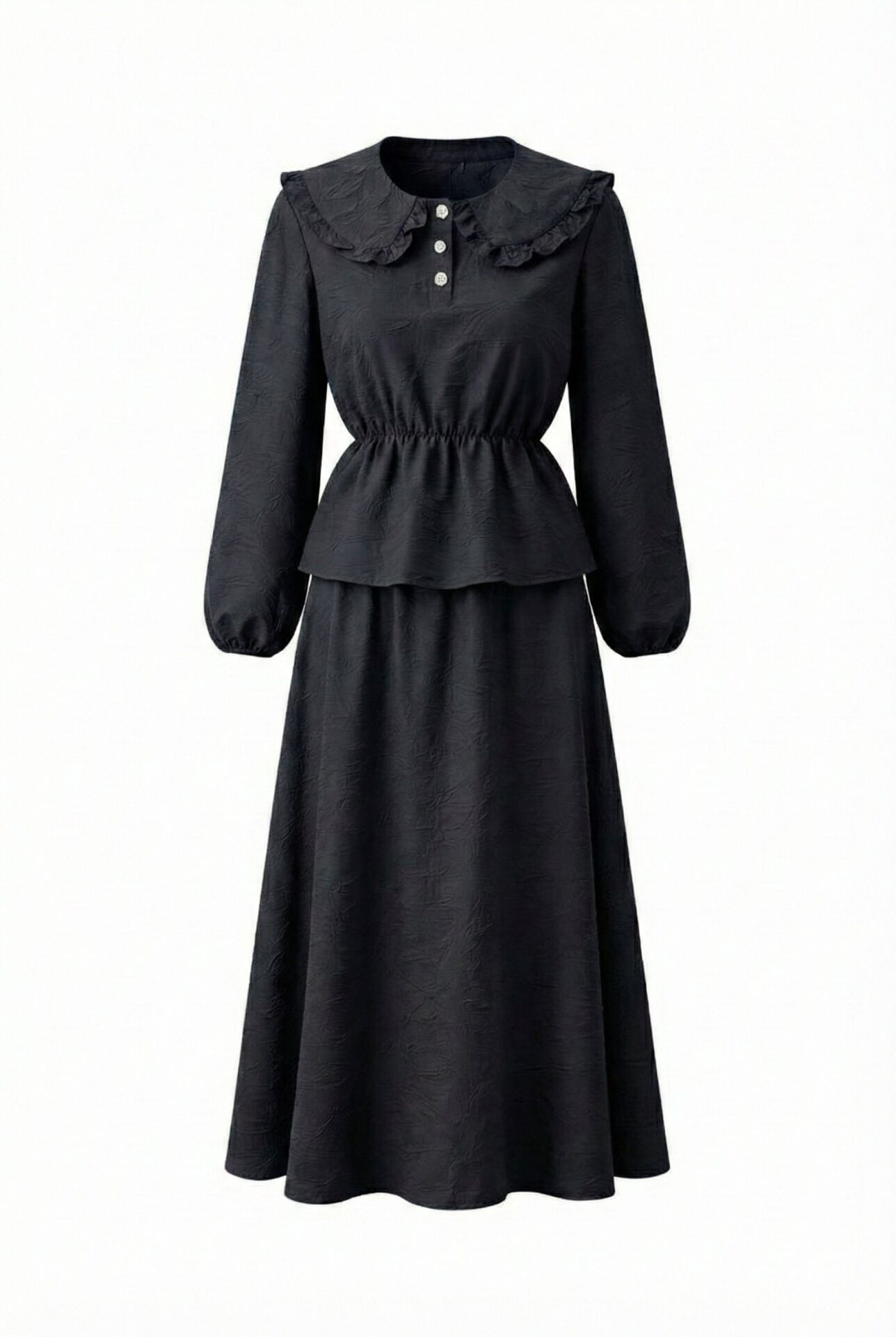 Retro Yaka: Zarif fırfır detaylı geniş bebe yaka (peter pan yaka) tasarımıyla nostaljik ve modern bir hava sunar.