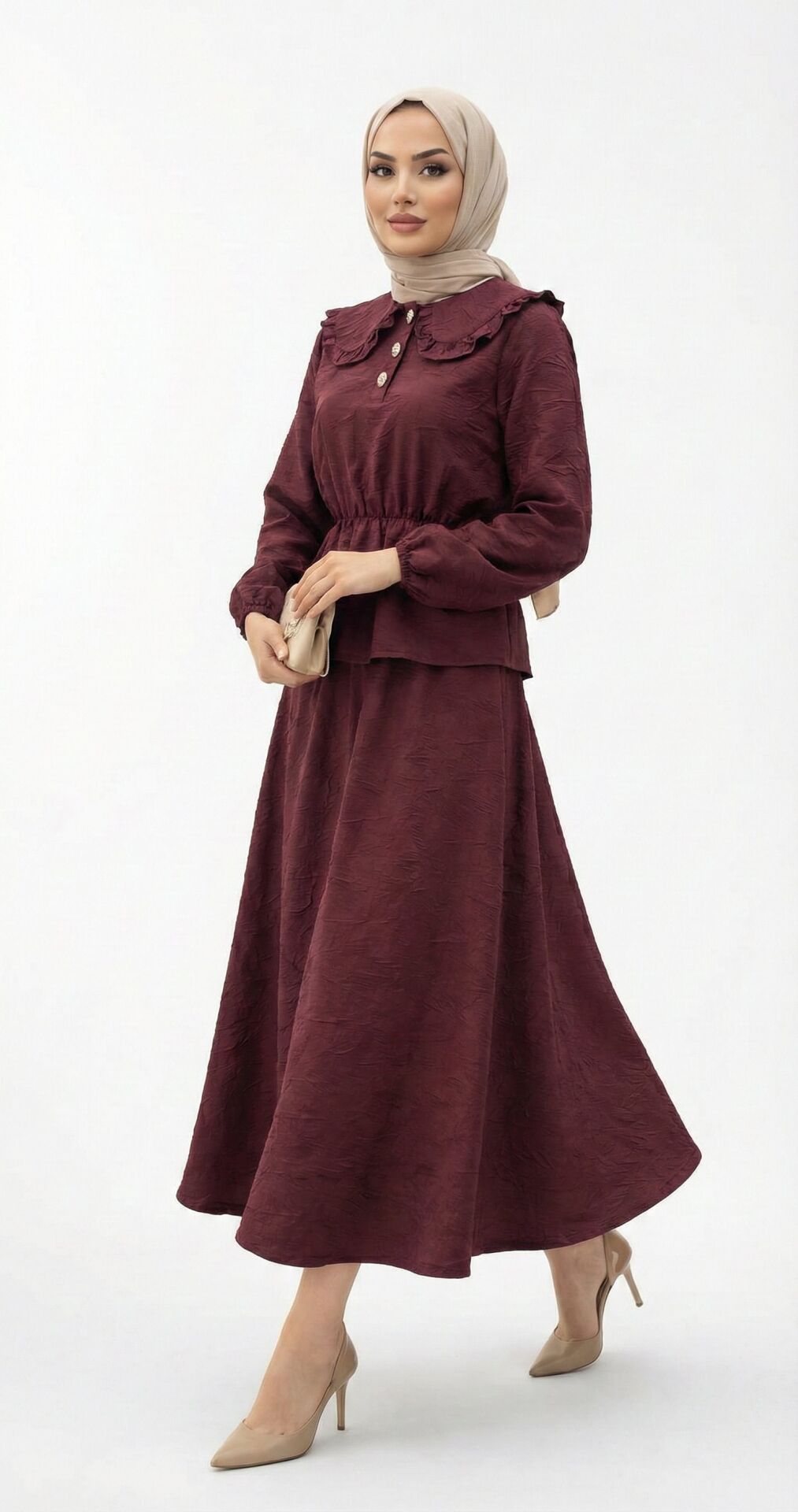 Peplum Detayı: Bel kısmındaki büzgülü ve peplum kesim, vücut hatlarını zarifçe dengeler.
