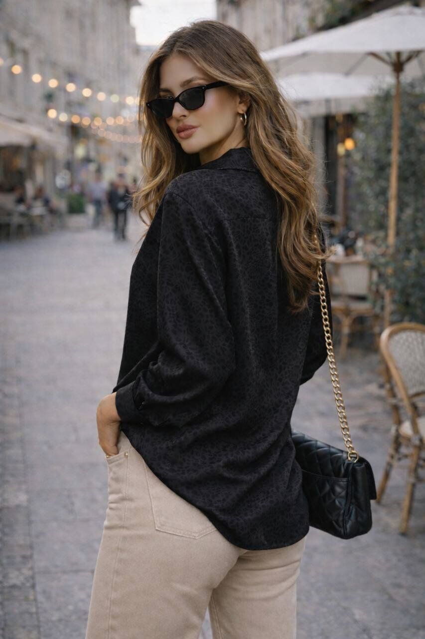 Kadın Jakarlı Leopar Desenli Uzun Kollu Gömlek