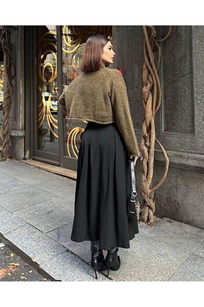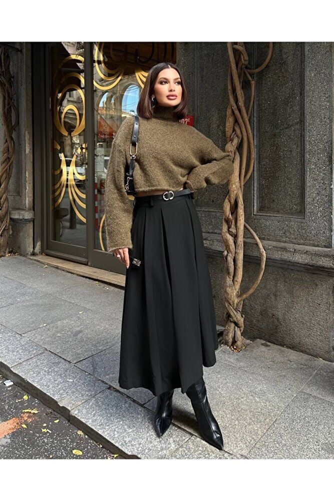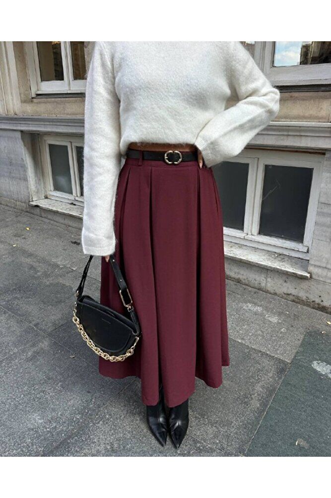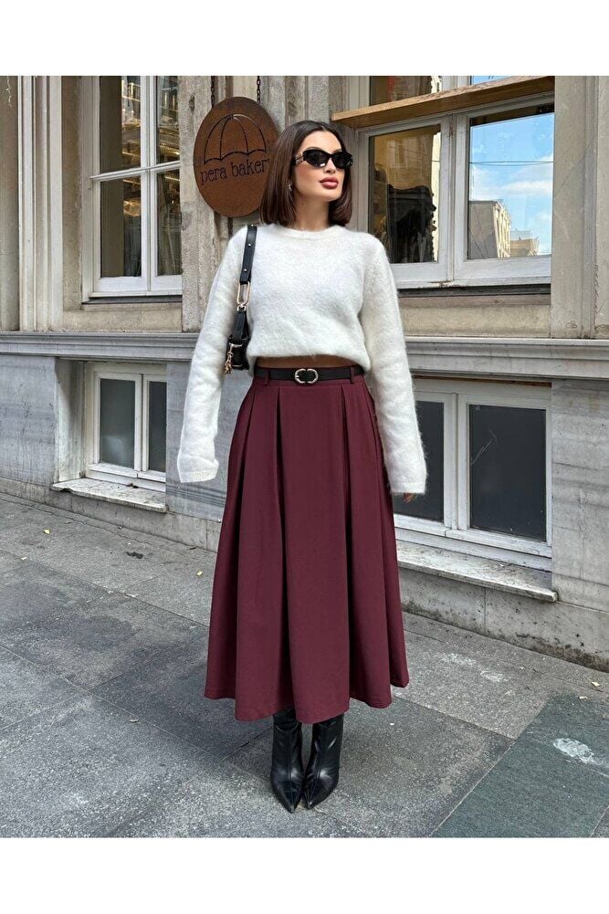 - Trend ortamlarda bile stil sahibi görünmenizi sağlayacak bu etek, kloş kalıbıyla feminen hatları ön plana çıkarır.
