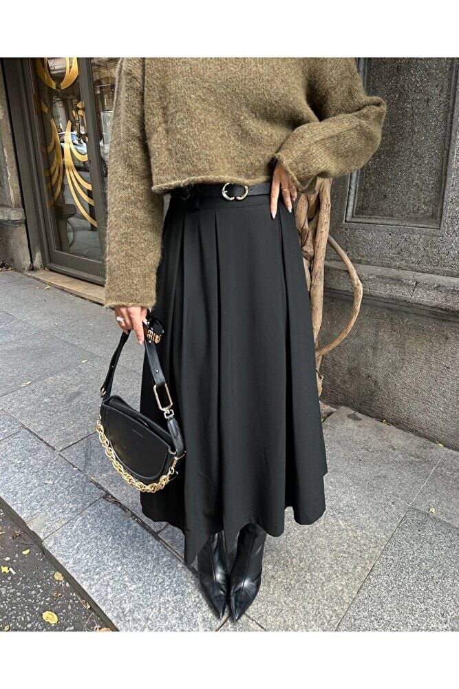 - ürün boyu 85cm'dir. Şık ve modern tasarımıyla dikkat çeken kemerli kloş etek, genç ve dinamik tarzınızı yansıtır.