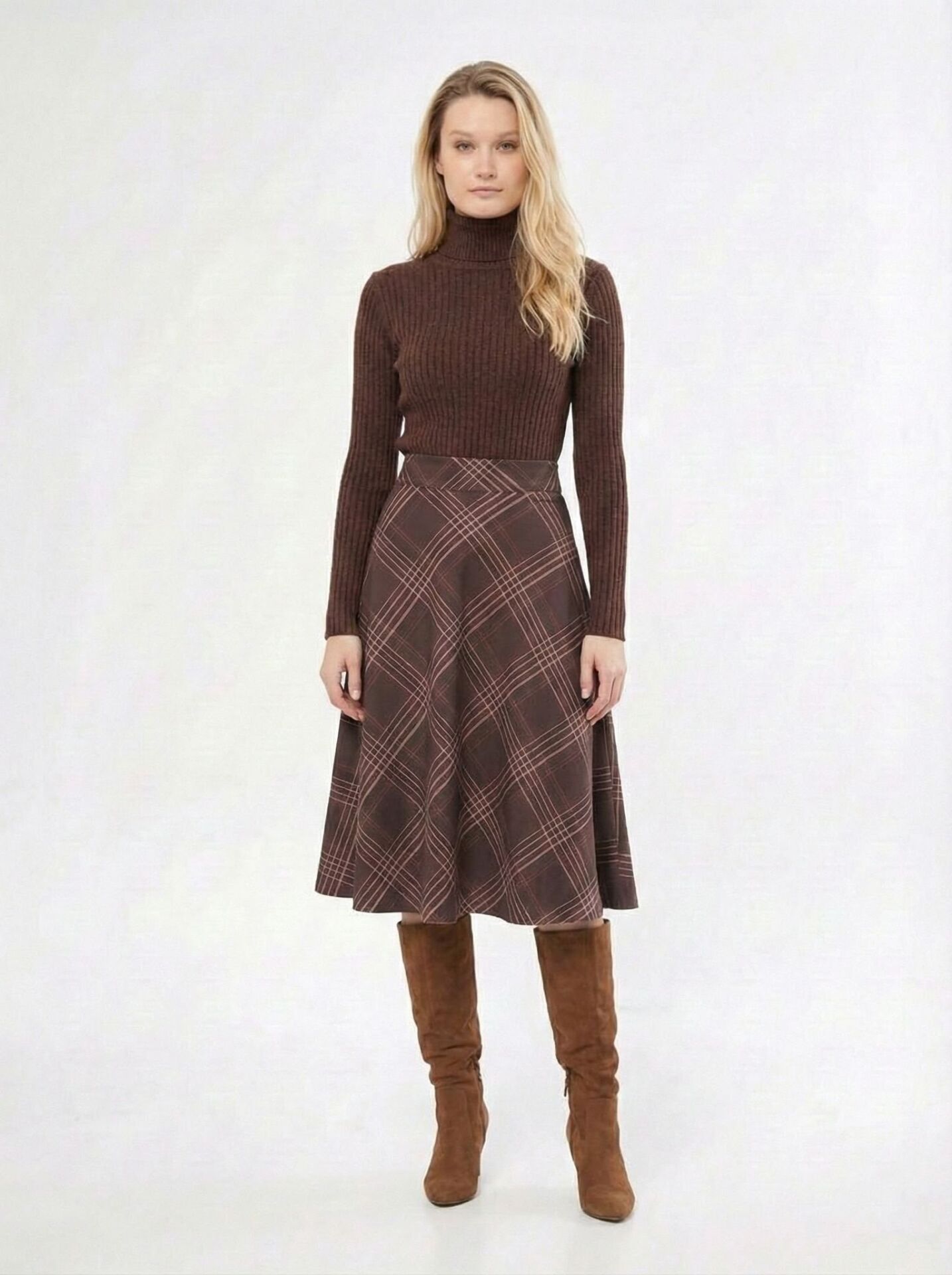 Kış ve sonbahar gardırobunuzun vazgeçilmezi olmaya aday! Zamansız ekose desenini modern verev kesimle buluşturan bu etek, ofis şıklığından hafta sonu gezmelerine kadar her anınıza eşlik edecek. Yüksek bel formu ve dökümlü yapısı ile hem konforlu hem de zarif bir silüet sunar.