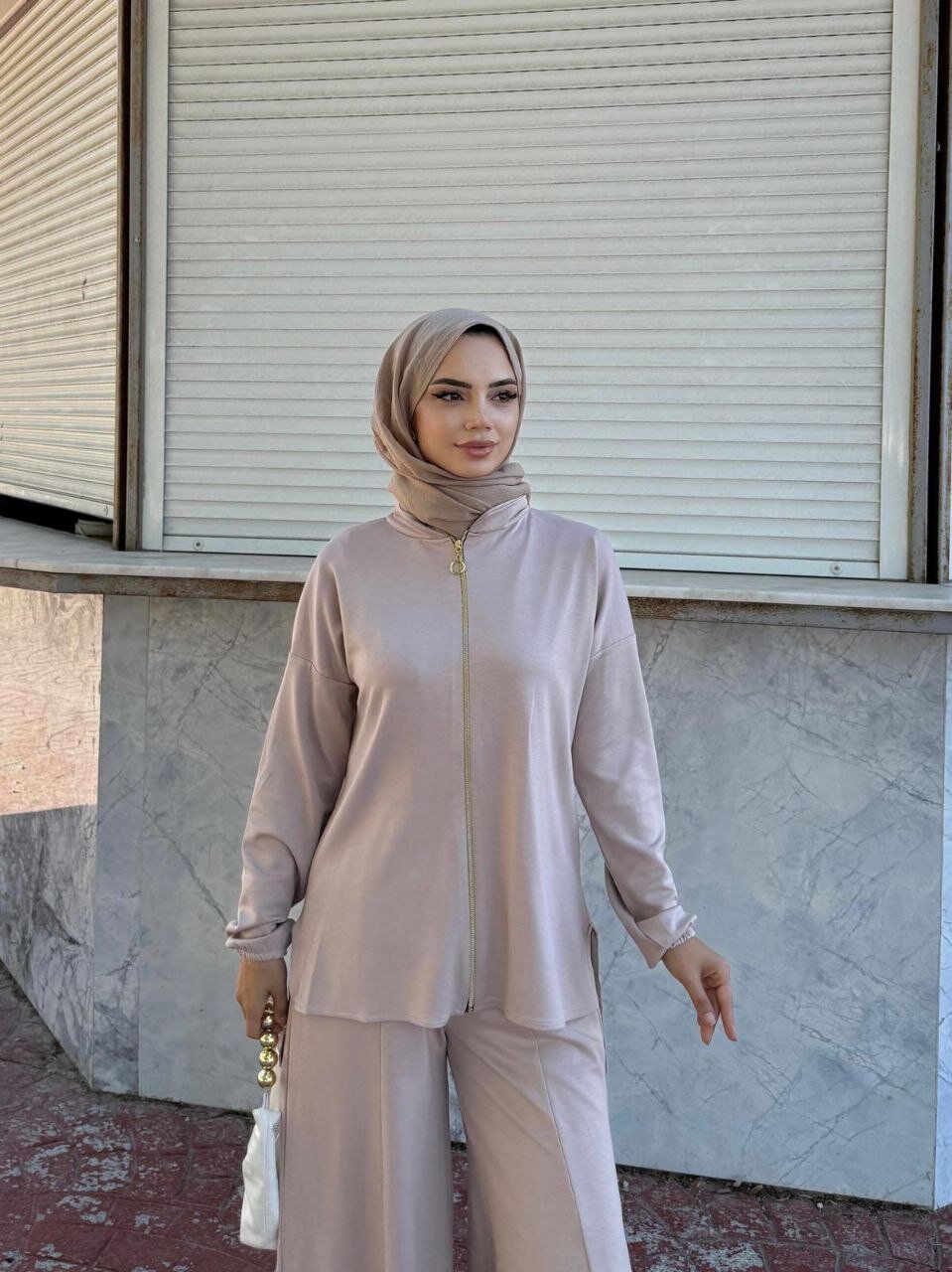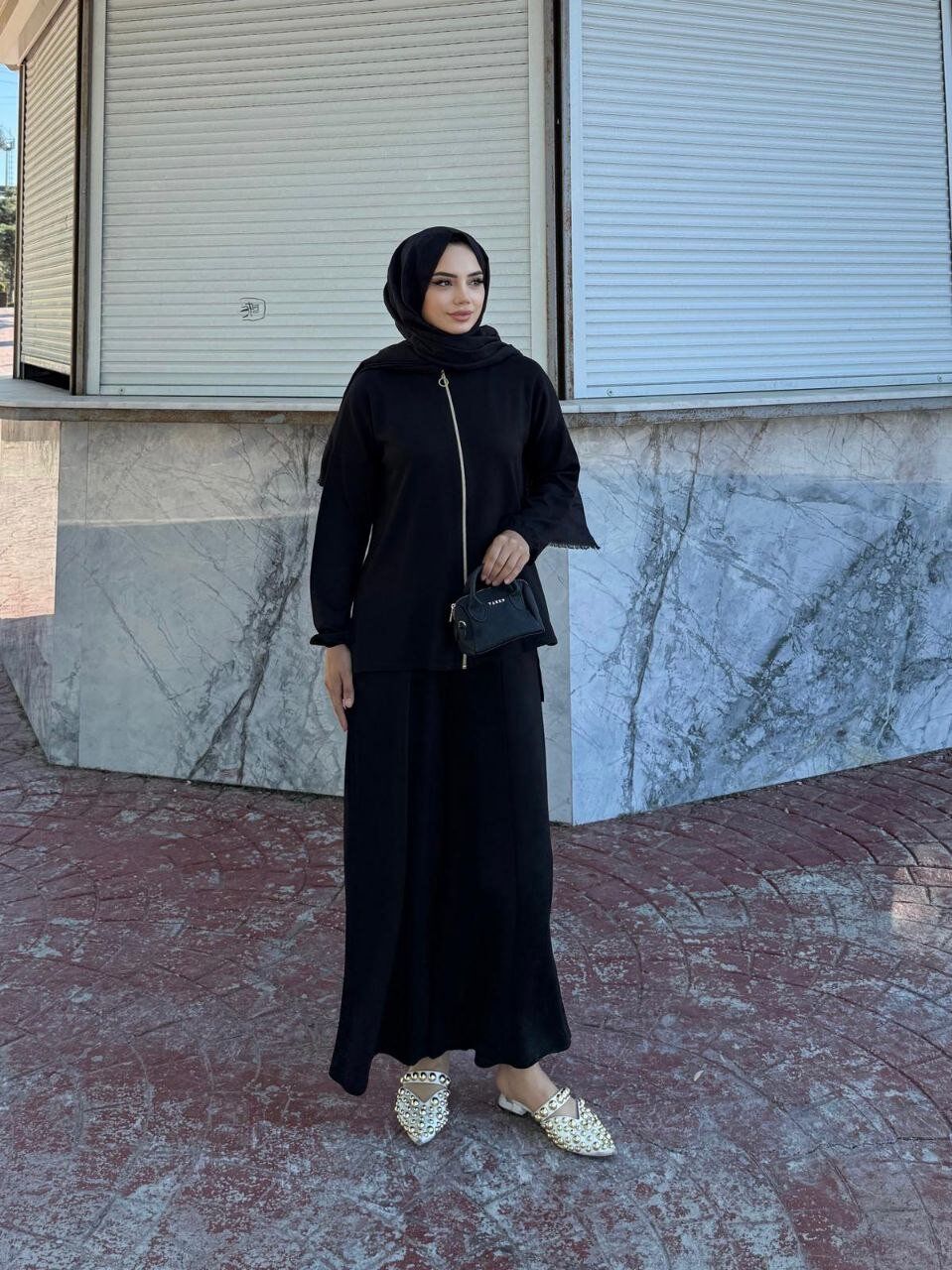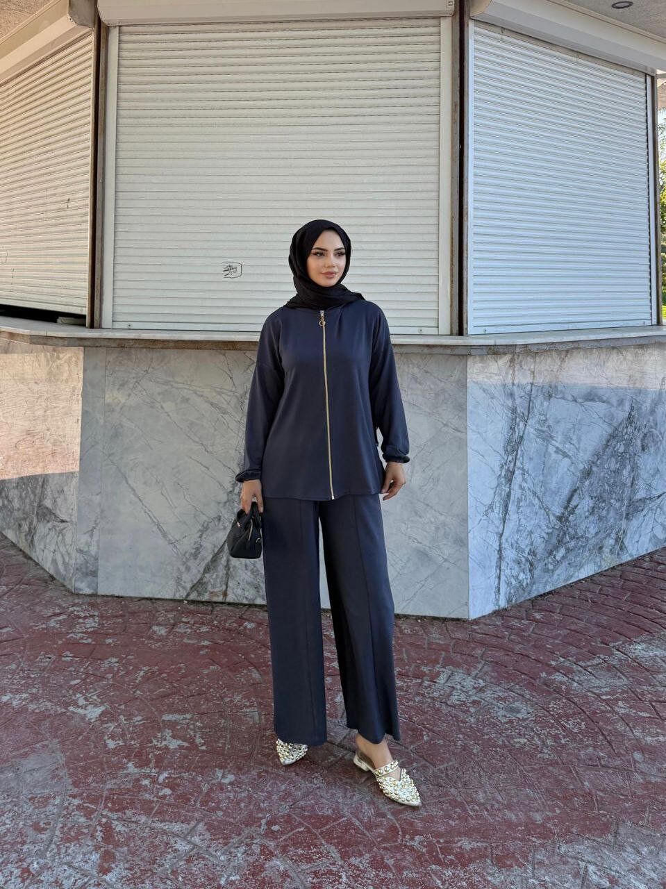 Gün boyu konforu ve şıklığı bir arada arayanlar için tasarlandı! Modern kesimi ve dökümlü kumaşı ile bu fermuarlı ikili takım, gardırobunuzun kurtarıcı parçası olacak. İster günlük yürüyüşlerinizde spor ayakkabılarla, ister ofis veya arkadaş buluşmalarında şık aksesuarlarla tamamlayın.
