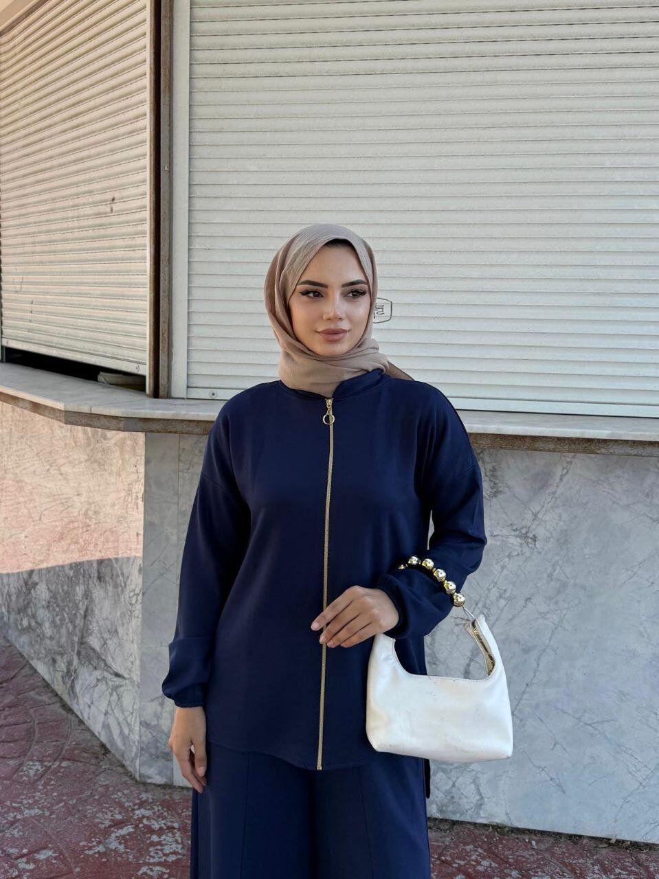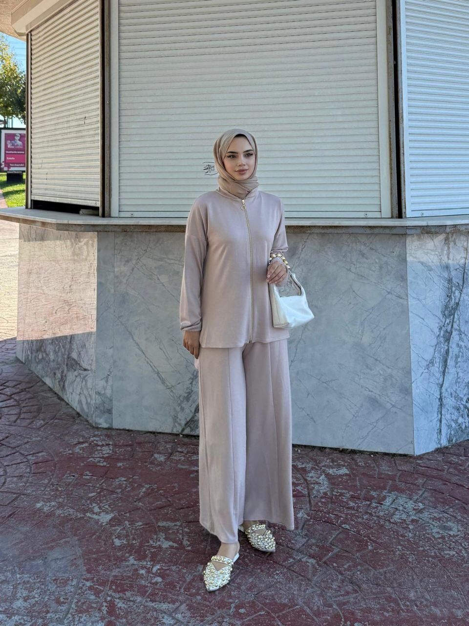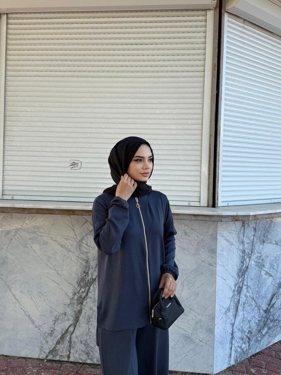 Gün boyu konforu ve şıklığı bir arada arayanlar için tasarlandı! Modern kesimi ve dökümlü kumaşı ile bu fermuarlı ikili takım, gardırobunuzun kurtarıcı parçası olacak. İster günlük yürüyüşlerinizde spor ayakkabılarla, ister ofis veya arkadaş buluşmalarında şık aksesuarlarla tamamlayın.