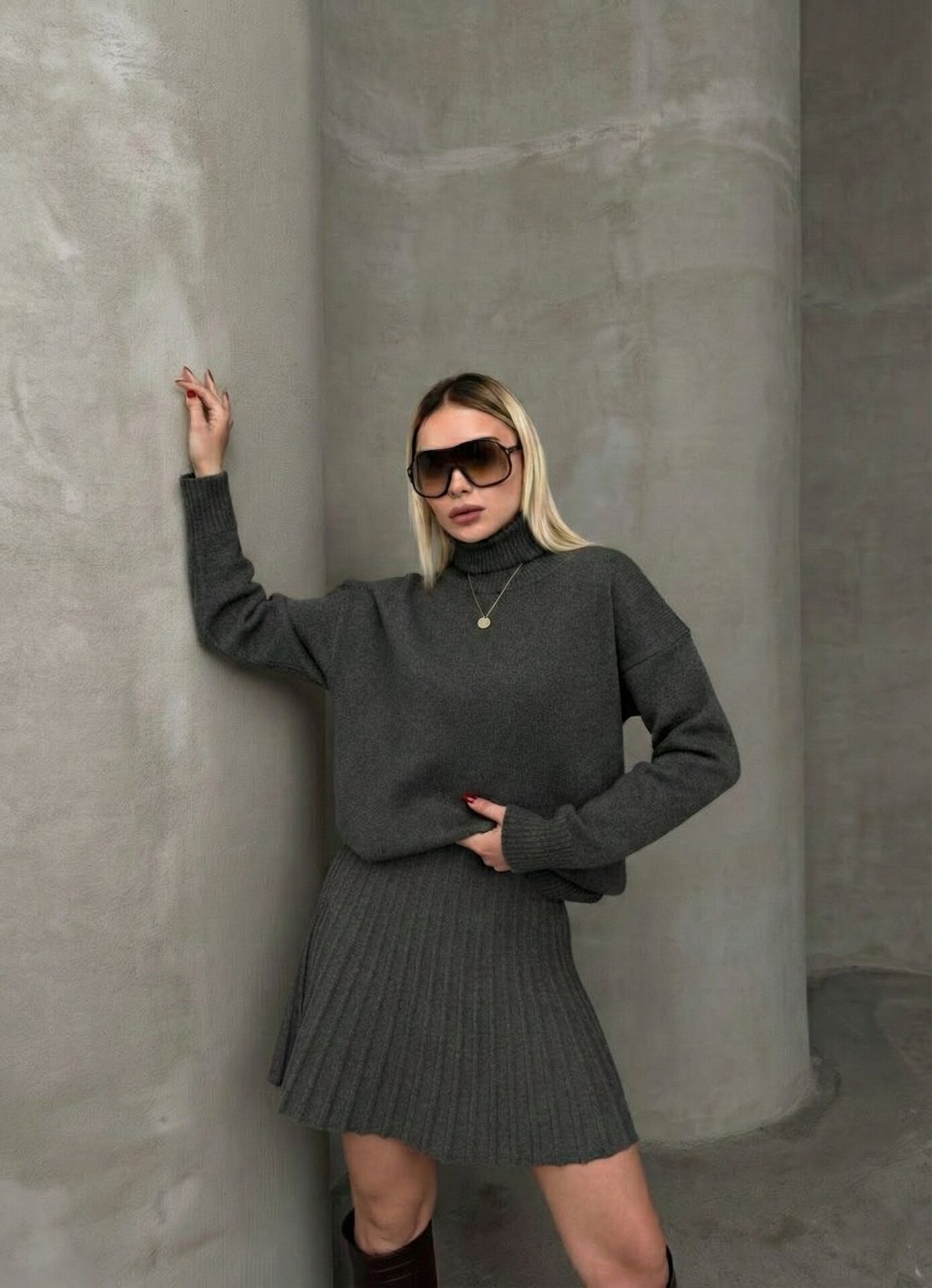 : Serin havaların vazgeçilmezi olacak bu ikili triko takım ile zahmetsiz şıklığı yakalayın. Yumuşacık triko dokusu ve modern kesimiyle gün boyu konfor sunarken, pileli etek detayı stilinize dinamik bir hava katıyor. Hem spor ayakkabılarla günlük tarzda hem de çizmelerle ofis veya akşam şıklığında rahatlıkla kullanabilirsiniz. Dolabınızın en kurtarıcı parçası olmaya aday!
