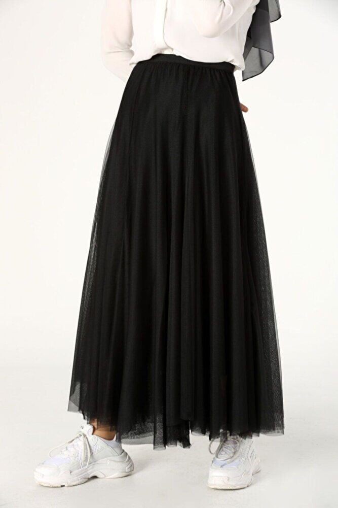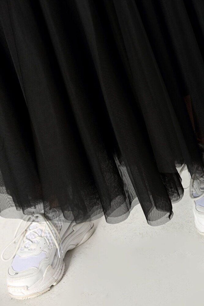 Siyah Kat Kat Tül Etek