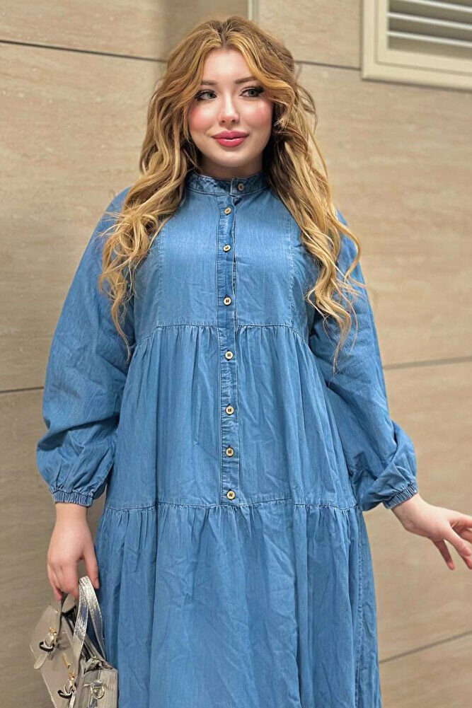 Tam Boy Tansel Kumaş Mavi Kot Elbise