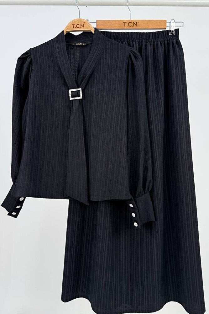 TOKALI KRAVAT YAKA ETEKLİ İKİLİ TAKIM