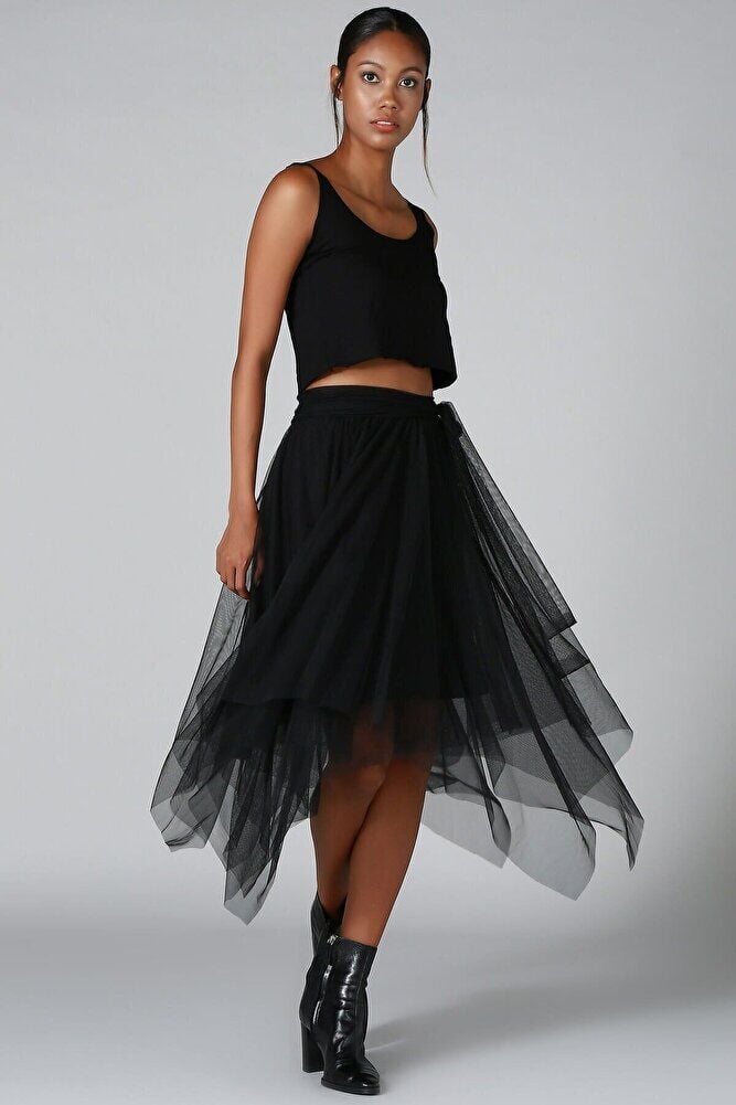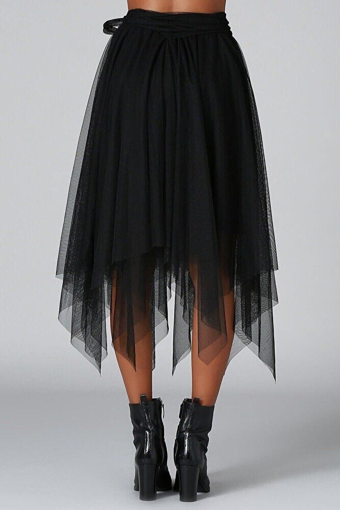 Tül Asimetrik Iki Katlı Astarlı Halloween Cadılar Tül Etek