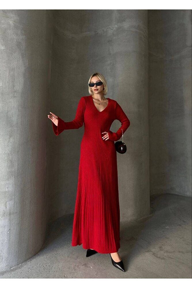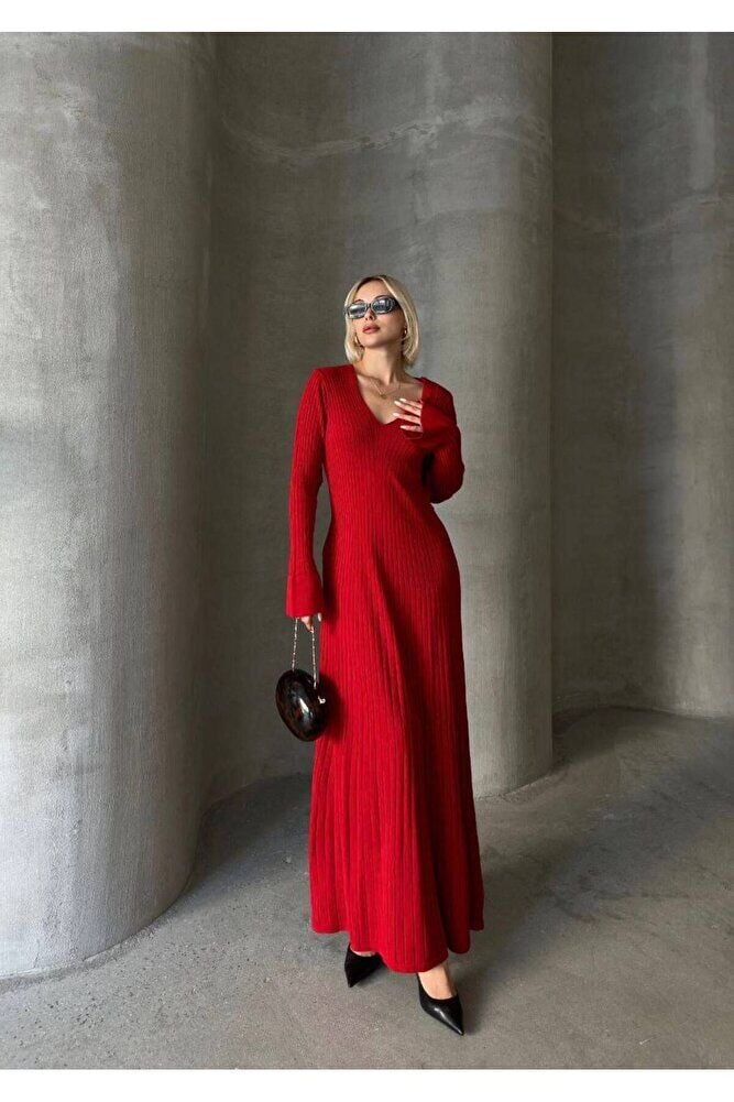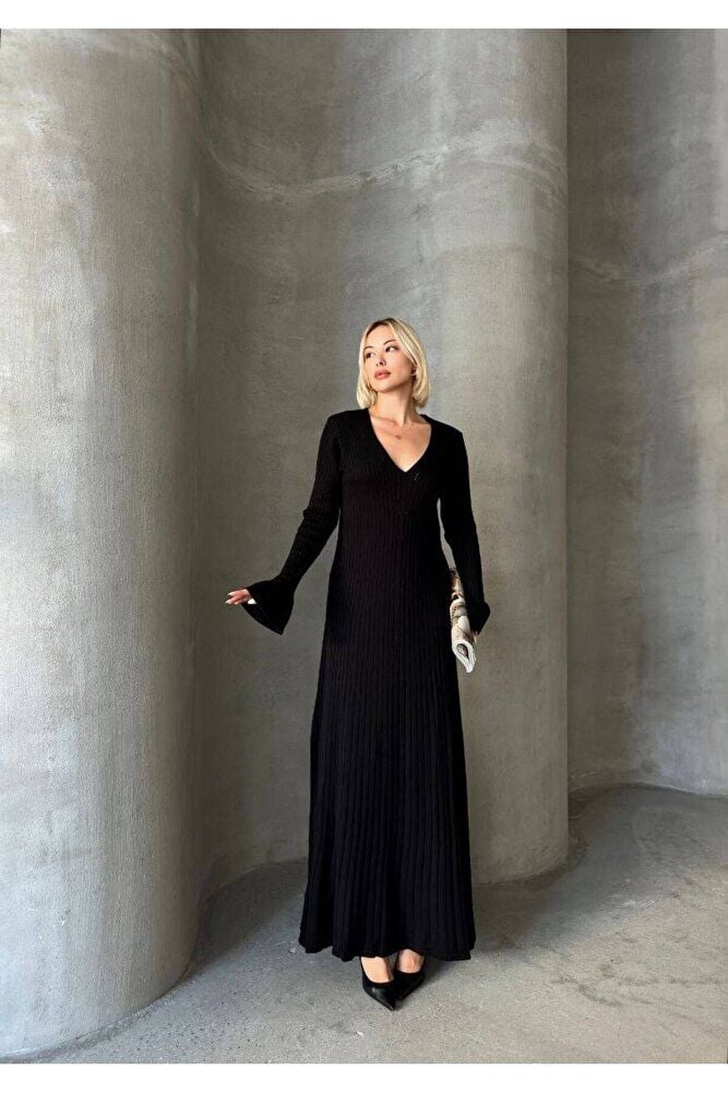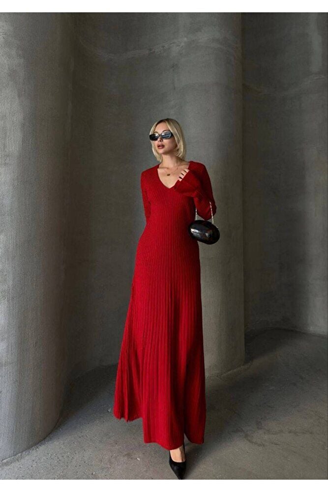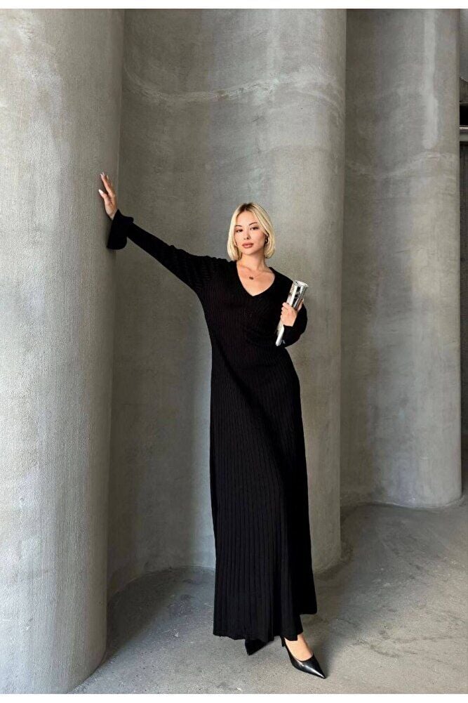 Uzun Kol V Yaka Triko Elbise
