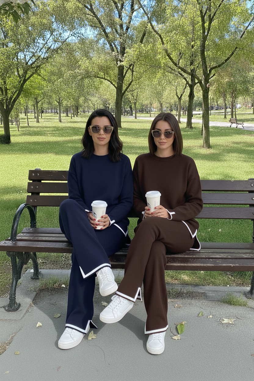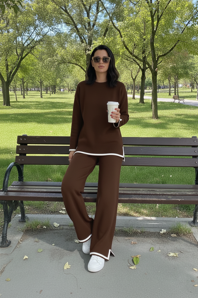 Yırtmaç Detaylı Triko 2li Takım Acı Kahve - Standart