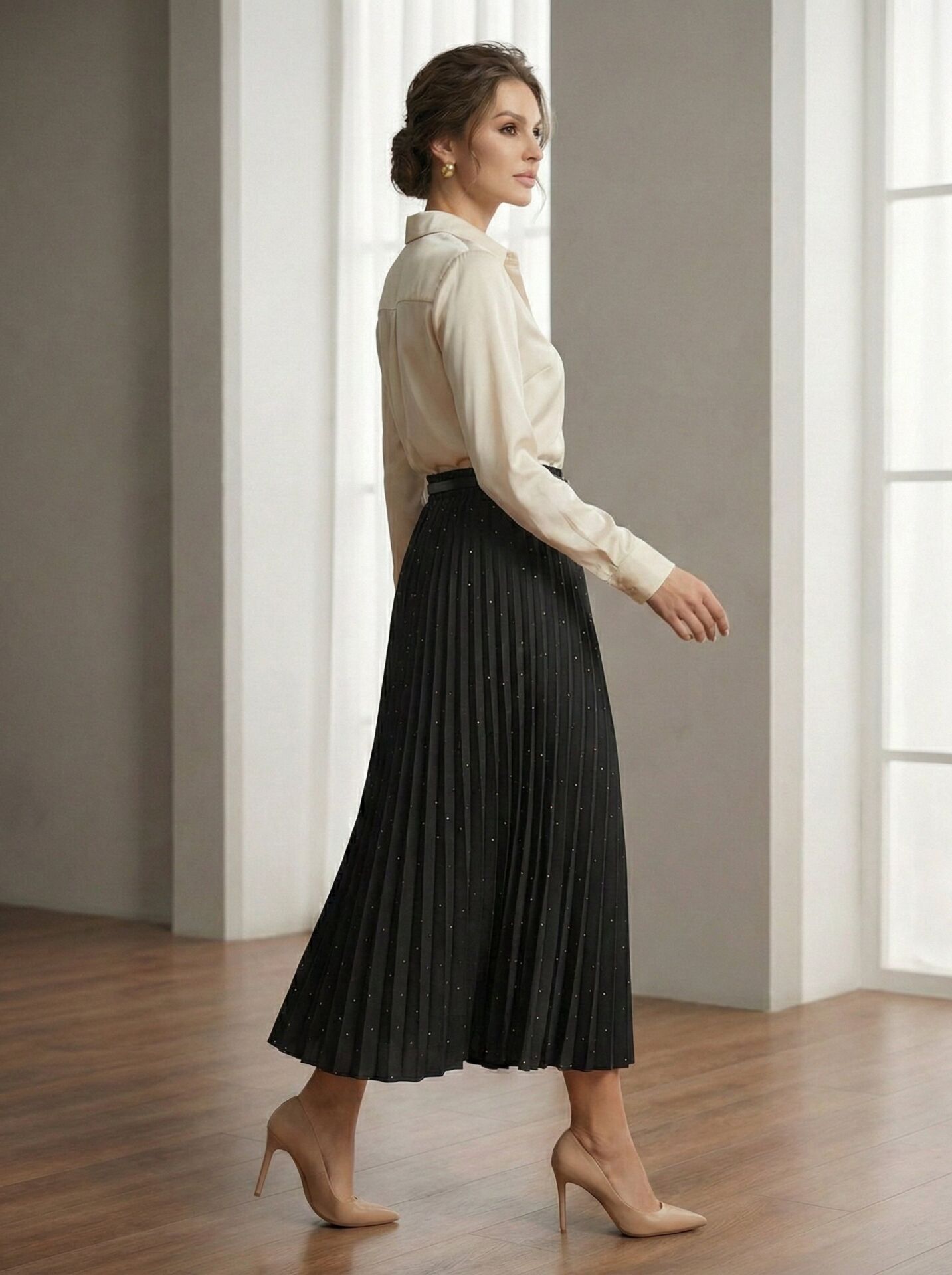 İster ofis şıklığında ipek bir bluzla, ister özel davetlerde şık topuklu ayakkabılarla kombinleyerek günün yıldızı olabilirsiniz.
